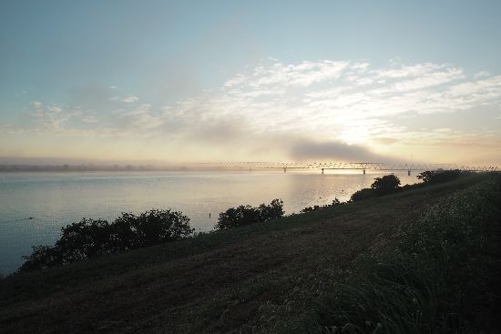 出発直後。鹿島線の鉄橋と太陽が美しかったので撮影。
