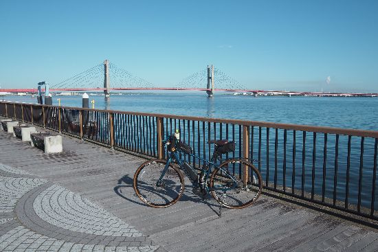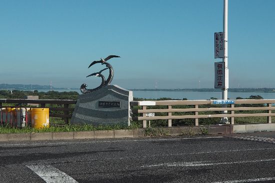 河岸公園に着きました。銚子大橋が見えています。ここから川と直角方向に行けば銚子駅です。