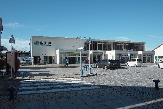 銚子駅です。駅前を左に行き、最初に現れた踏切で線路を渡ります。要するに、海沿いを行かず