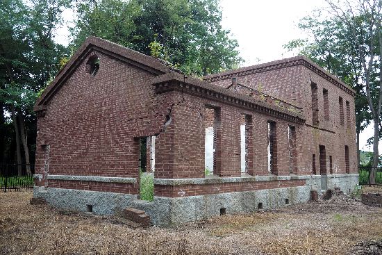 神社近くの旧竹内農場赤レンガ西洋館にやって来ました。フェンスで周囲を囲まれて、中には