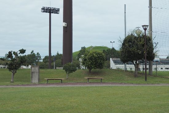 龍ヶ岡公園横を通過中。画面奥に岡が見えますが、たつのこ山です。