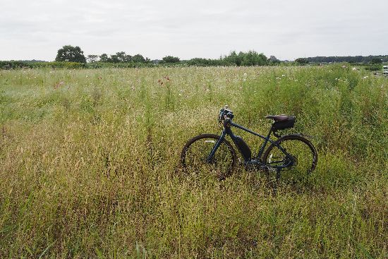 師戸のコスモス畑に着きましたが、こういう状態でした。長くサイクリングをしていると、よくある