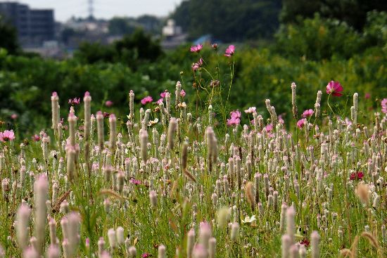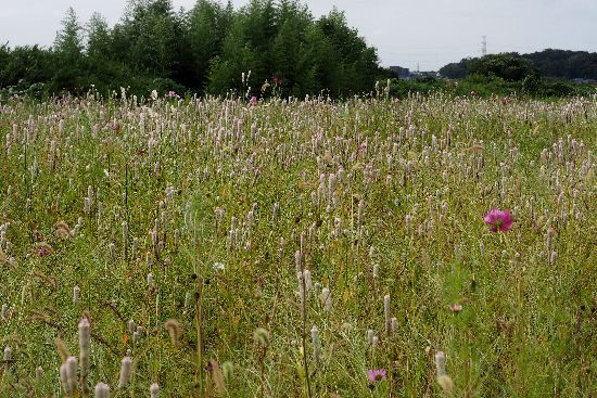 みると、今年はコスモスの植え付けをしなかったようで、一面の草原でした。コスモスに代わり、別の花が繁茂 し