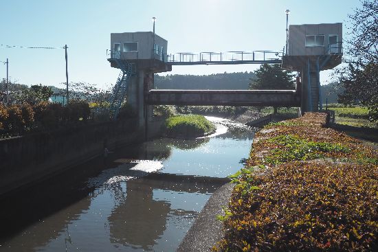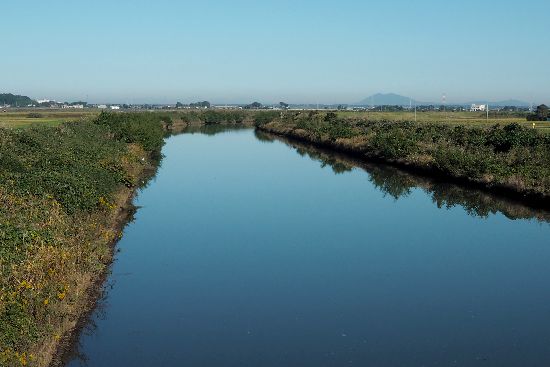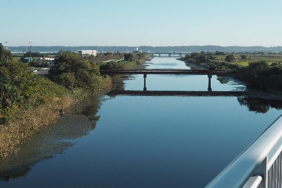国道464号で北須賀交差点を目指します。ここは印旛沼捷水路を渡るところ。快晴です。
