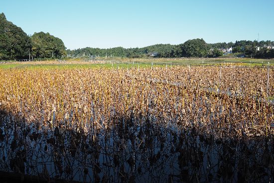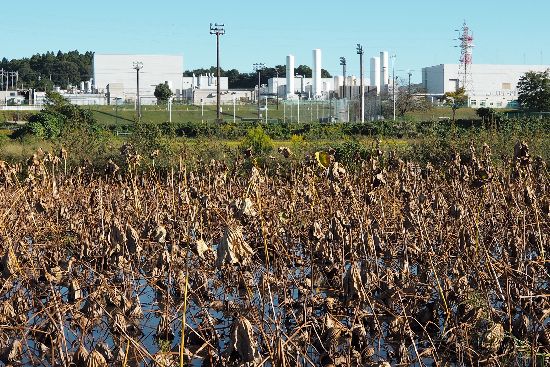下総松崎駅から県道18号を通過し、豊住工業団地まで来ました。枯れた蓮田と近代的工場の