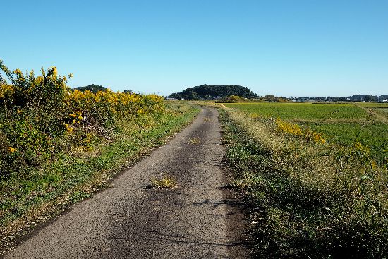 蓮田のある谷津風景。この先、圏央道の下を潜ります。そして最初に現れる谷津を横切る道