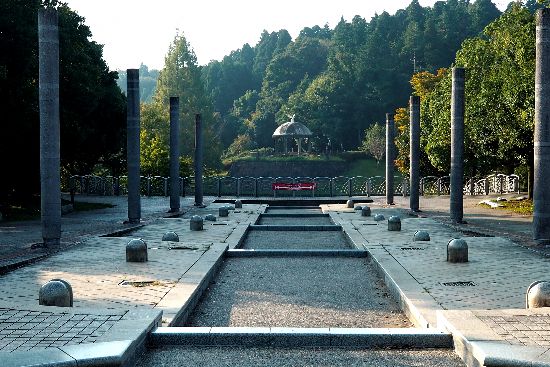 公園の入口から振り返る。先程の東屋が見えています。