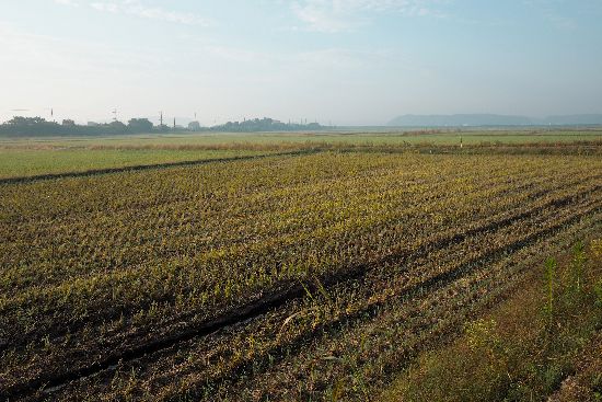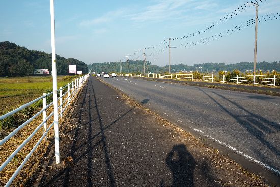 土手を諦めて、平野の中央部の未舗装路に出て、鹿島川大橋近くの交差点(正規のルート)に