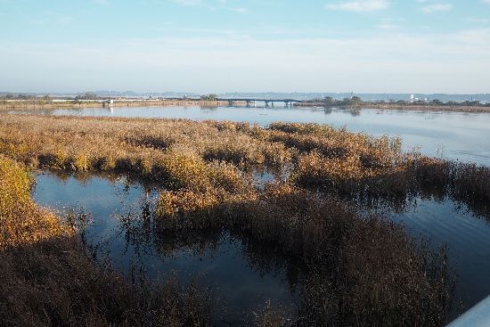 R464からの印旛沼。見えている橋は甚兵衛大橋です。この先、成田湯川でR18に降りて、イオン、