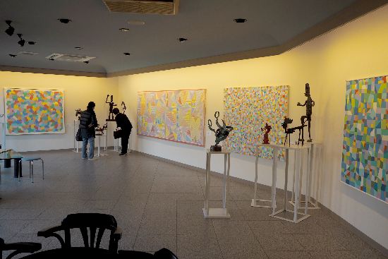 室内の展示。ここは抽象画と金属作品。別棟には琴のコレクションや茶器もあります。