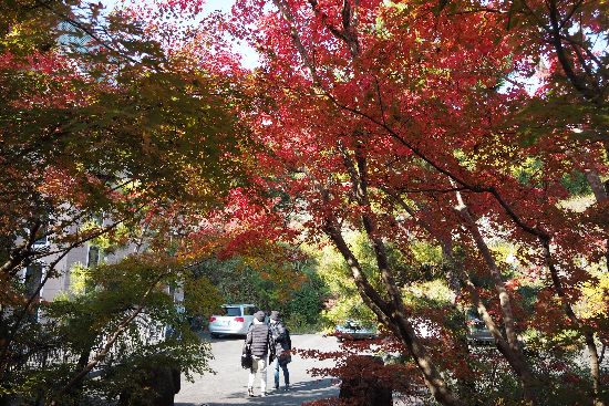 入口(入場料売場)へのアプローチ。紅葉してます。