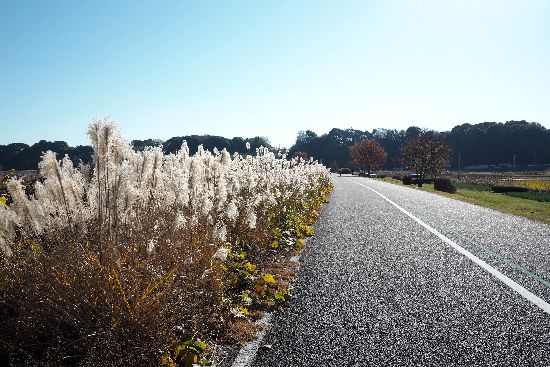いつもの手賀川サイクリングロードを手賀沼に向かいます。数えてみたら、ここを通るのは