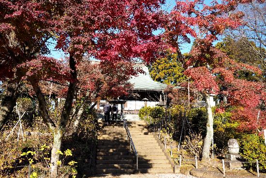 秋もゆき もみじ散り敷く 本土寺の 見上げる空は ただただ碧し