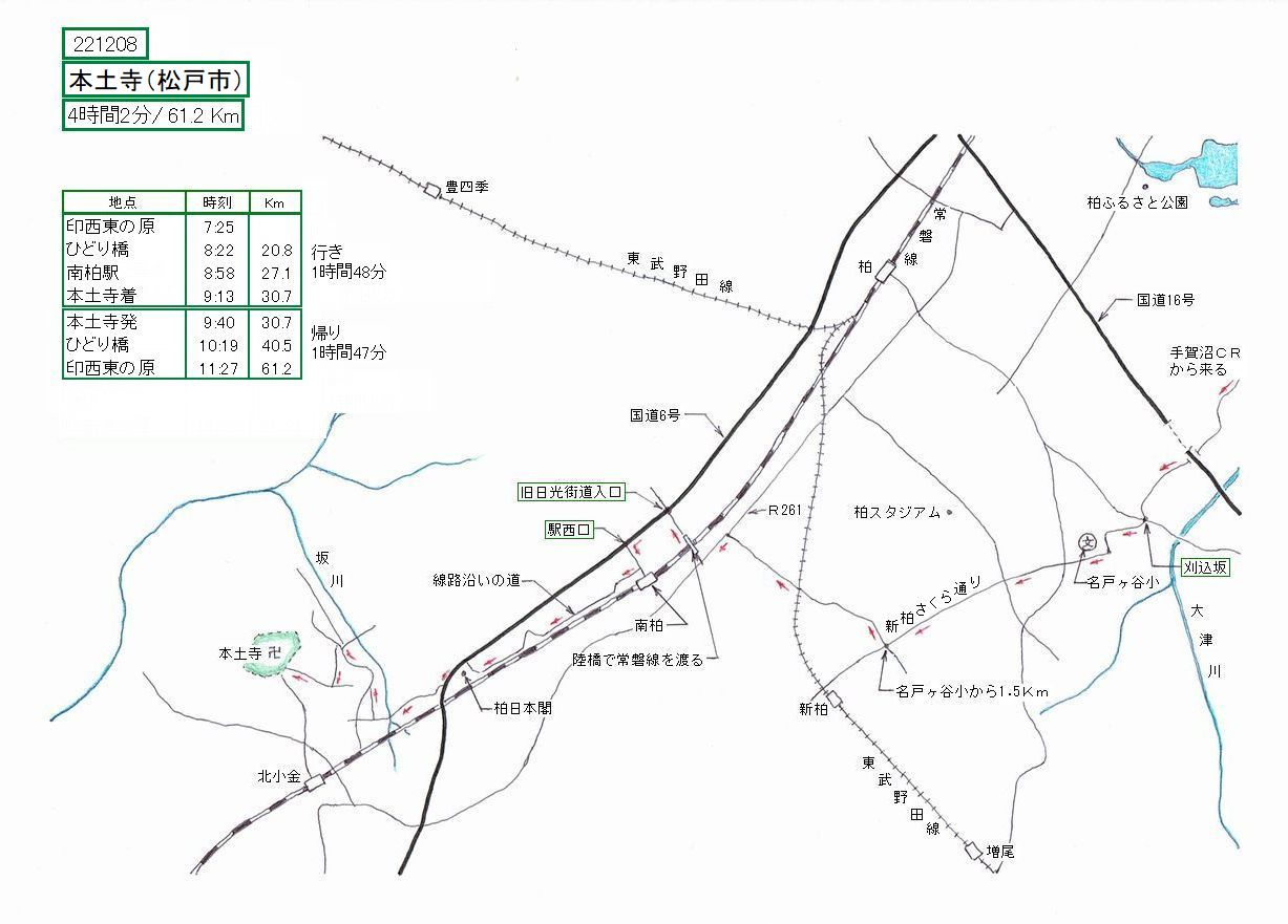 途中から、写真にあるように、自転車レーンのある走り易い道(新柏さくら通り)に変ります。