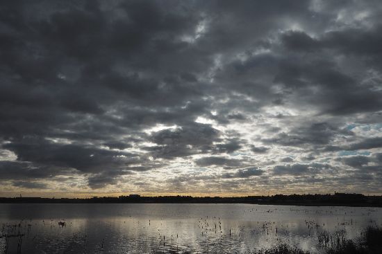 船戸大橋からの印旛沼。今日は一日快晴の天気予報でしたが、随分と雲の多い朝でした。