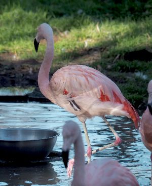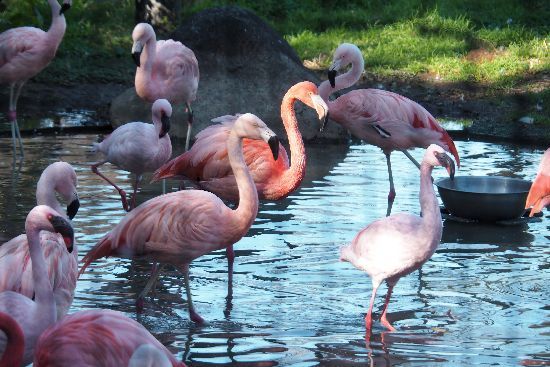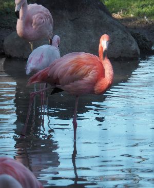 フラミンゴ。ここでは三種類のフラミンゴが飼育されています。それぞれ羽の色が異なります。