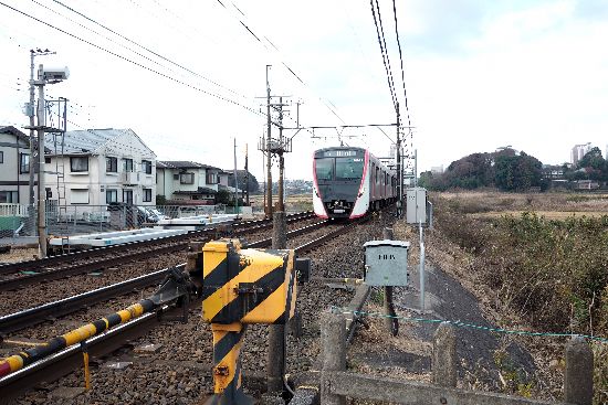 の踏切を渡ります。