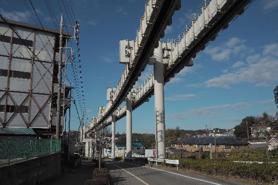 やがて、みつわ台の住宅地を抜けて、モノレールの軌道下に出ました。軌道下に道路があり、