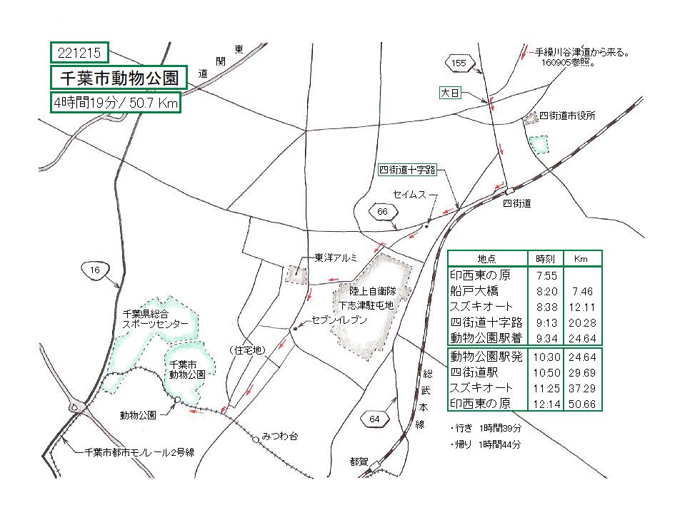 すが、国道16号を走る度胸は無く、手繰川谷津道から四街道駅に出て、あとは裏道を繋げて動物公園に行きました。