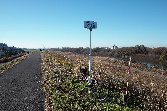 江戸川の「海から29Km」標識の土手に出ました。