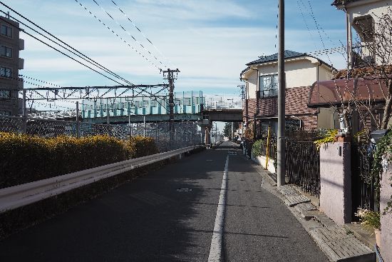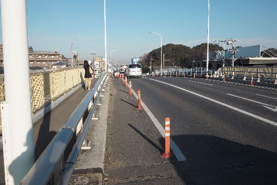常磐線を陸橋で越えます。自転車のレーンがあります。
