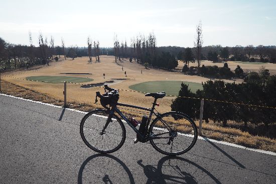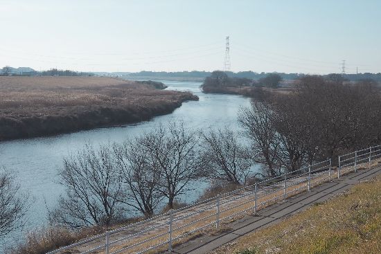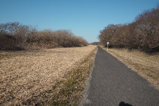 ころです。見えているのは取手パークゴルフ場。土手の上は以前は砂利道でしたが、綺麗な舗装
