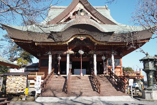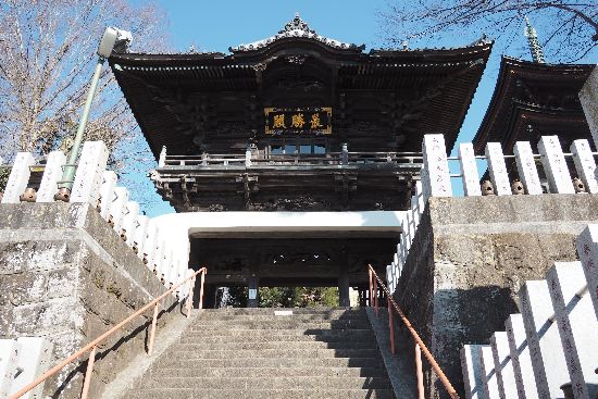 布施弁天に着きました。階段下から楼門を撮っています。そういえば、1月17日に牛久沼に行った