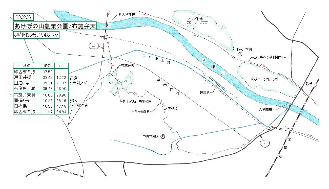行きは利根川左岸、帰りは利根川左岸をとりました。