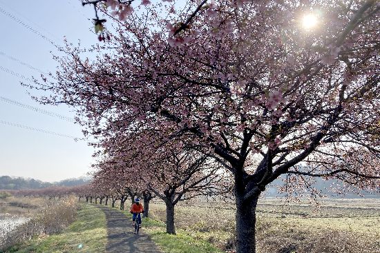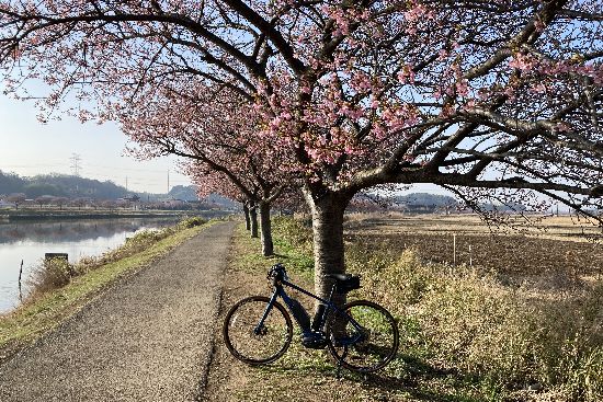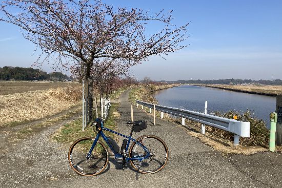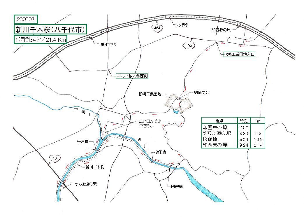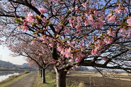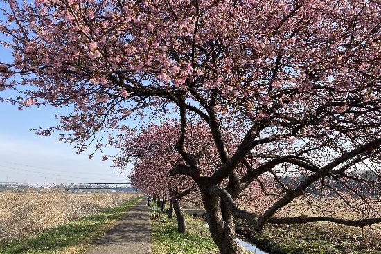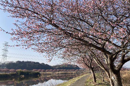やちよ道の駅の歩道橋で新川右岸に渡ります。ほぼ満開です。