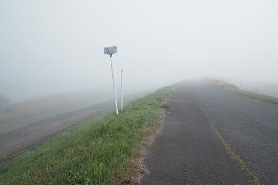 小貝川の戸田井橋を過ぎた地点で。霧の中のサイクリングです。