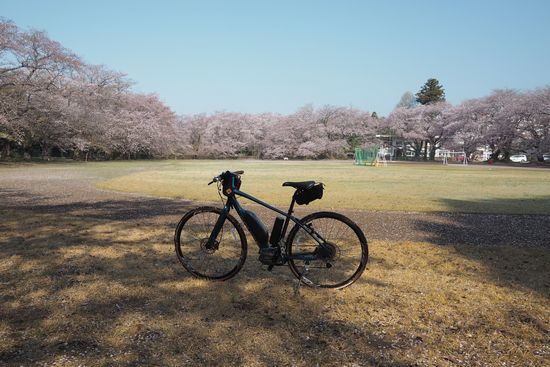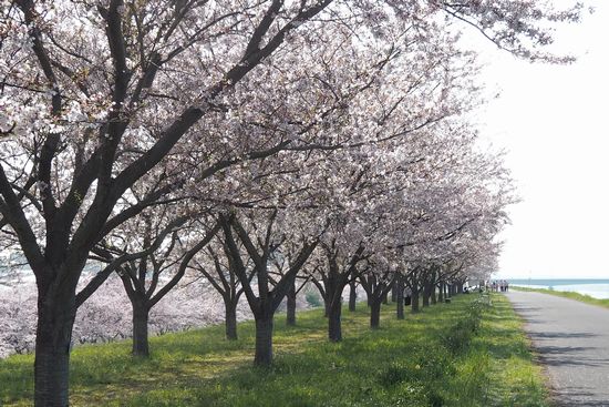 さて、これは帰る途中。利根川土手。前方に栄橋が見えてきたあたり。ここにも桜並木があります。