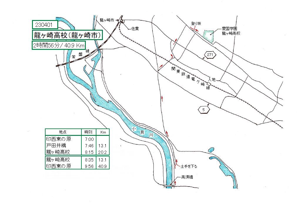 竜ケ崎線の次は県道271号(竜宮通り)を越えます。龍ケ崎高校がある稲敷台地が近づいて