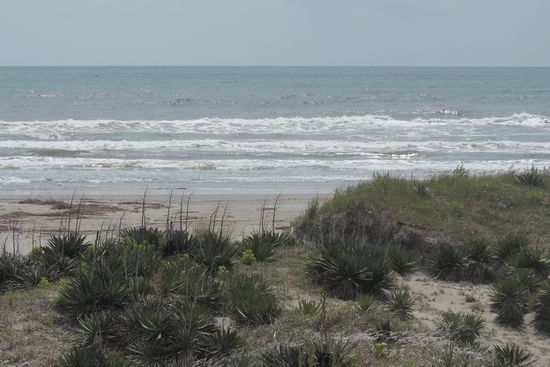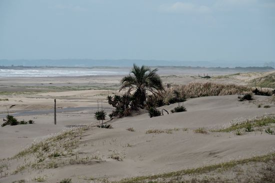 車が多いので、並行した車の少ない道で海に出ました。荒涼とした景色が広がっていました。