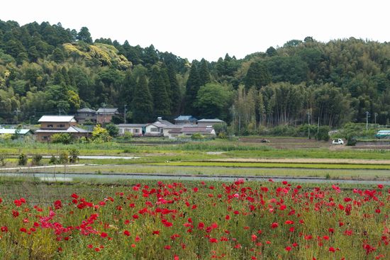 川沿いに九十九里平野に降りて行きますが、見かけるケシは全て赤。ナガミヒナゲシの勢力が及