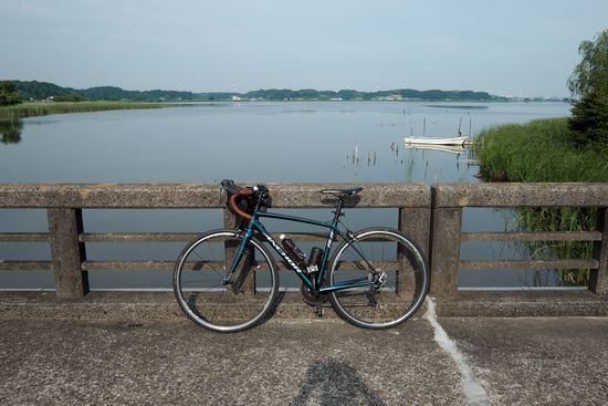 手賀沼CRを行きます。遠くに手賀大橋が見えています。