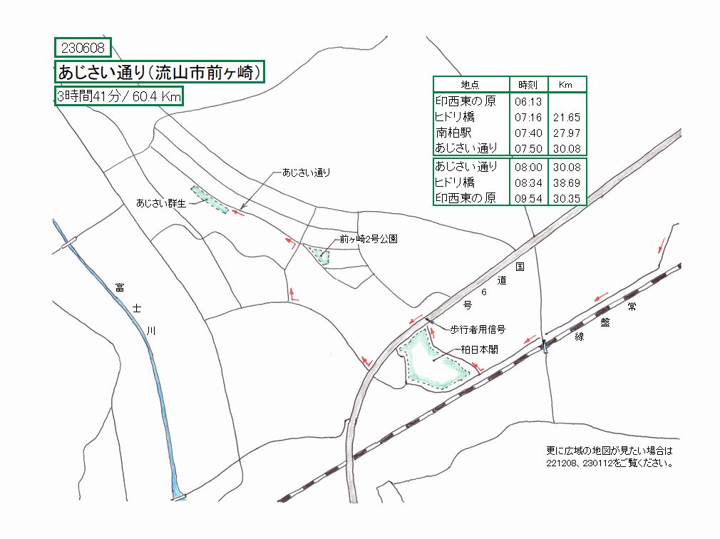 南柏駅、常磐道側道、柏日本閣経由で、あじさい通りに着きました。