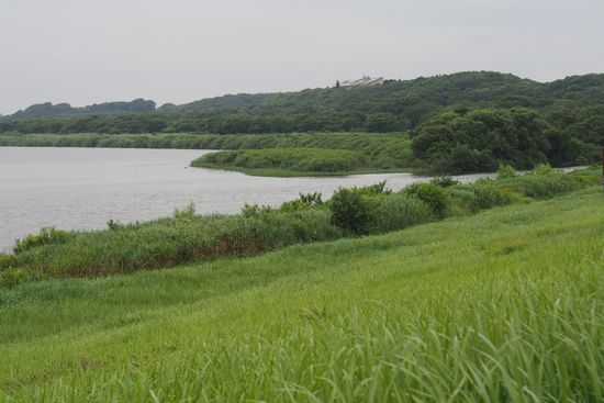 さて利根川の土手に出ました。画面中央は小貝川の合流部です。