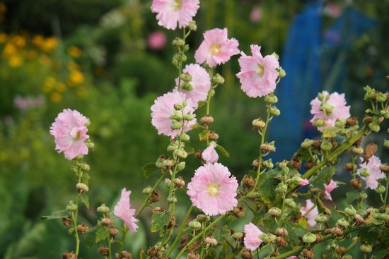 若草大橋からの坂を下りきり、農道に左折すると、お花畑が現れます。これはタチアオイ。
