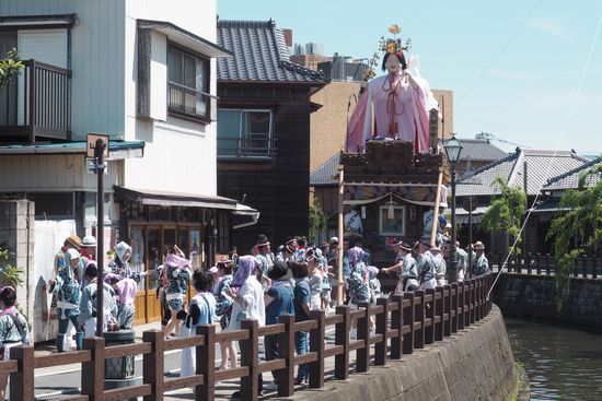 小野川の 川面を渡る お囃子に あめのうづめの 山車進み行く