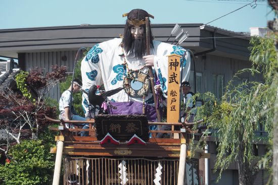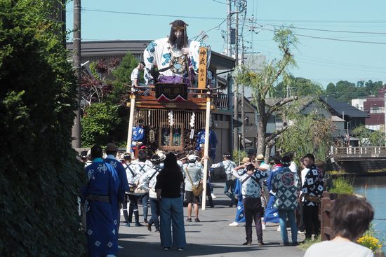 小野川を更に上流に進むと、別の山車がおりました。こちらは天鈿女命(あめのうづめのみこと)