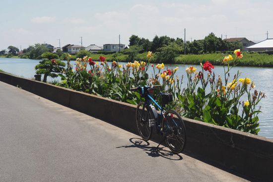 若草大橋から新利根川に出て、万歳橋からふれあい橋間、新利根川側道を走ります。川辺に咲く