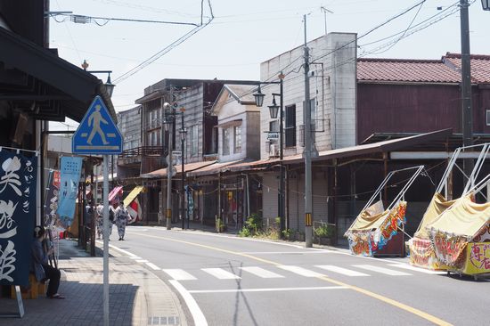 江戸崎の市街地に来ました。たくさんの屋台が並んでいましたが、総て閉められていて、12時近いと