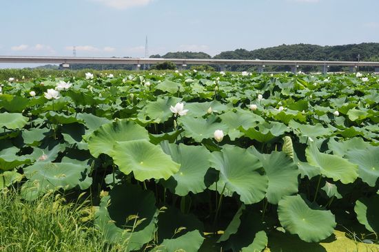 帰途、曳舟橋近くに蓮田があり、花が咲いていました。