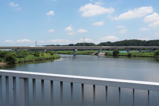 小野川を曳舟橋で渡ります。下流方向に見えている橋は、圏央道です。