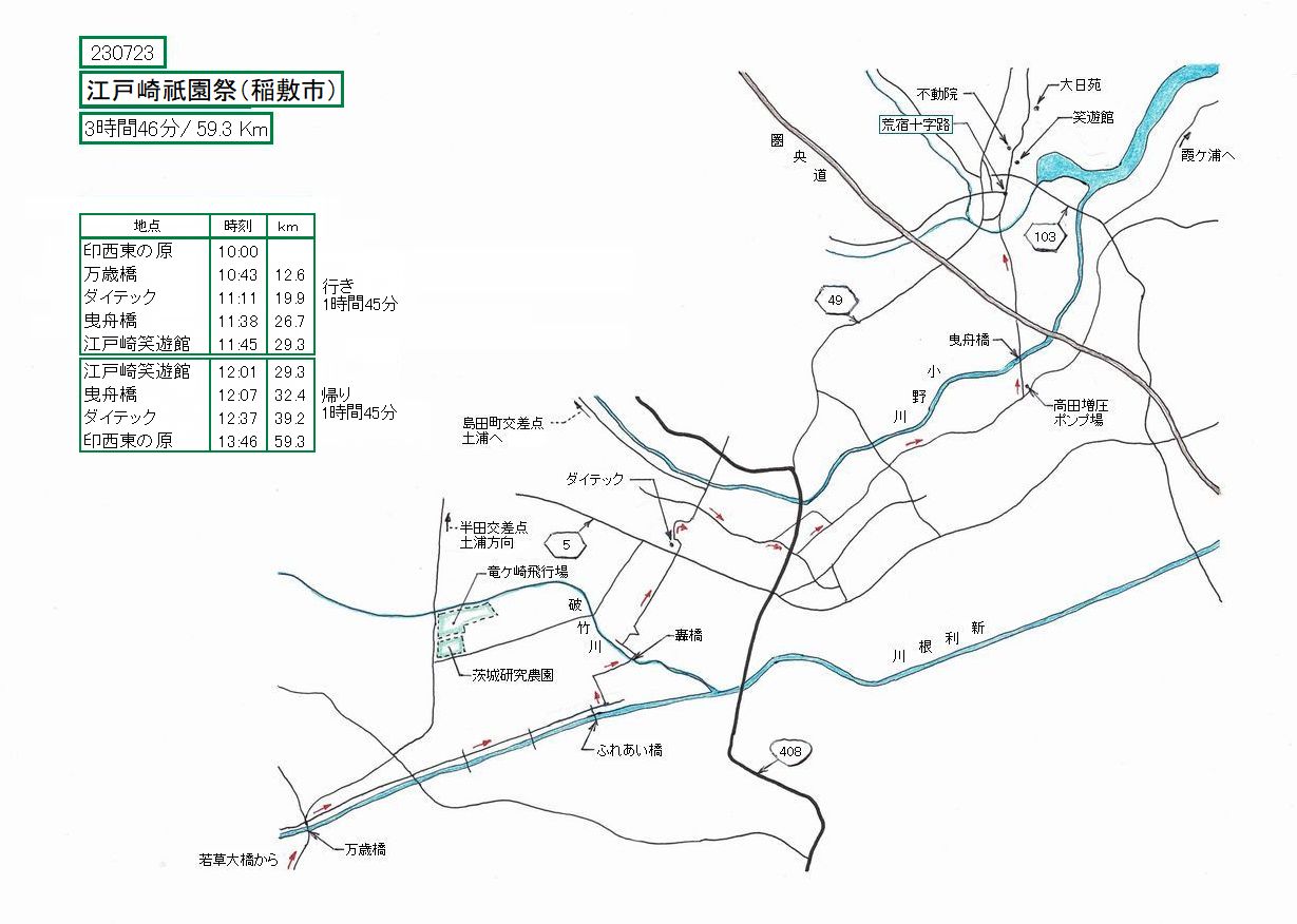 ふれあい橋まで来ました。ここで新利根川を離れ、破竹川に向かいます。