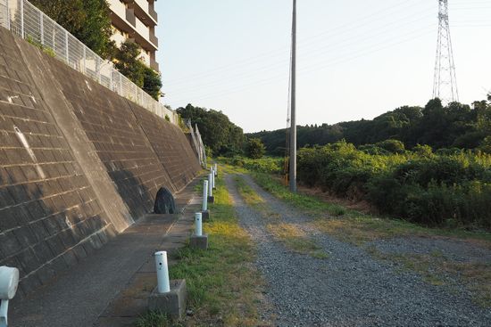 宅地が終わり、谷津道が始まる地点です。暫く砂利道が続きます。