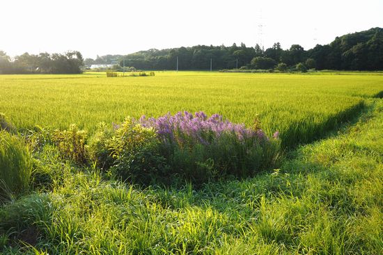 やはり谷津の主役は稲田です。中央にある花はミソハギです。