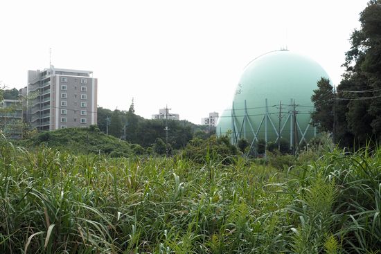 国道16号脇にあるガスタンクが見えてきました。ガスタンクとドンキホーテの間の道で、国道の下