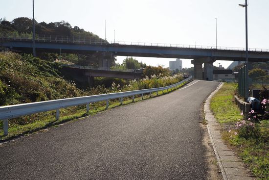 橋の下を過ぎて、県道18号に出ます。(登り坂)