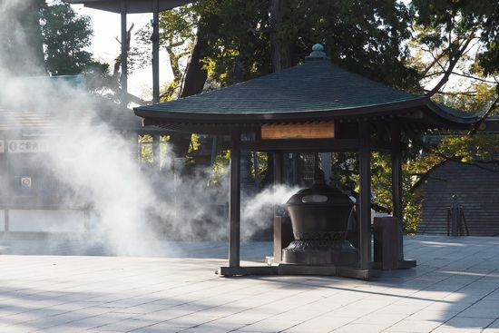 香炉から煙がたなびいていますが、珍しいことに、周囲に誰もいません。